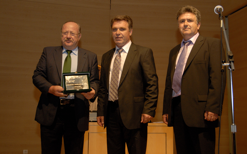 Ο επιχειρηματίας Κώστας Παπαδημητρίου, της εταιρείας «Balsamon» απονέμει το βραβείο στους Μάκη και Μιχάλη Χρυσάφη της ομώνυμης εταιρείας.