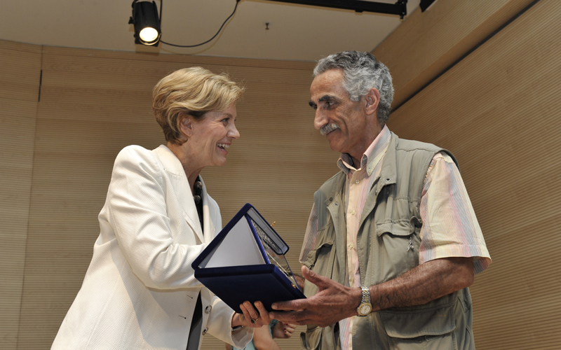 Η Joann Ryding, Αντιπρόεδρος της Αμερικανικής Γεωργικής Σχολής, απονέμει στον Δημήτρη Χατζηιωαννίδη το Βραβείο Παραγωγής Τυροκομικών Προϊόντων για την εταιρεία «Κασέρι Ξάνθης-Δημήτρης Χατζηιωννίδης».