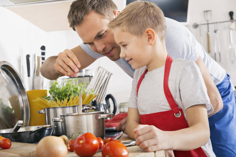 «Το νερό έβρασε. Να ρίξω το ρύζι;» με ρωτάει ο γιος μου όλος προσμονή για το σημερινό γεύμα. Έχει ήδη πλύνει τις μελιτζάνες και τις πιπεριές και στέκεται με την κουτάλα του περήφανος δίπλα στα λαχανικά του. Λαχανικά που κάποτε δεν έτρωγε και τα έβαζε διακριτικά στην άκρη του πιάτου του. Τώρα όμως ανακάλυψε το υπέροχο μοβ γυαλιστερό χρώμα στη φλούδα της μελιτζάνας και την αντίθεση που κάνει με την μπεζ σάρκα, το ρύζι που μπαίνει σκληρό στην κατσαρόλα και βγαίνει φουσκωτό και μαλακό αλλά και τα ρεβίθια που αφού τα αφήνουμε να μουλιάσουν σε νερό, τα κάνουμε υπέροχους κεφτέδες. «Από αυτά να φας, τα έφτιαξα εγώ!!!» προτρέπει τους φίλους του, με το τεράστιο χαμόγελο του, την αλευρωμένη του μυτούλα και τα χεράκια του με κολλημένους μαϊντανούς. Όλες οι έρευνες δείχνουν πώς οι οικογένειες που μαγειρεύουν και τρώνε μαζί, βοηθούν τα παιδιά να κάνουν πιο υγιεινές επιλογές γεύματος τώρα στο μέλλον. Επίσης με τίποτα δεν συγκρίνεται ο χρόνος που περνάμε μαζί με τα παιδιά μας, βοηθώντας τα παράλληλα να αποκτήσουν μια πολύ χρήσιμη δεξιότητα.