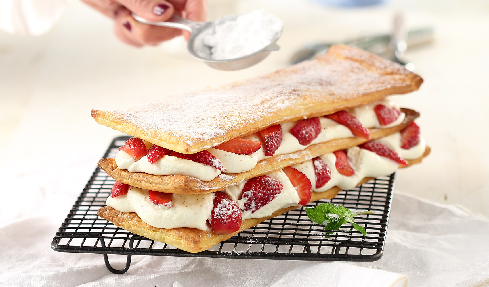 Δροσερά, εύκολα επιδόρπια. Στη φωτογραφία: Κλασικό φραουλένιο μιλφέιγ.