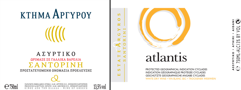 Κτήμα Αργυρού / Ατλαντίς Λευκό / Ασύρτικο, Αηδάνι, Αθήρι / ΠΓΕ Κυκλάδες / Αλκοόλ: 13%